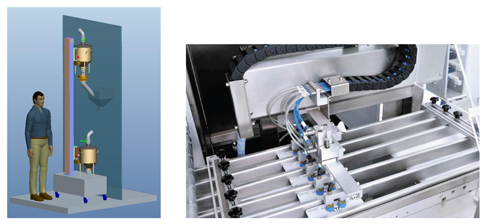 (Closed transferring tablets solution by concept 3D to transfer tablets from IBC to blister packaging machine and robotic arm function are designed by TTP – Source: TTP)
